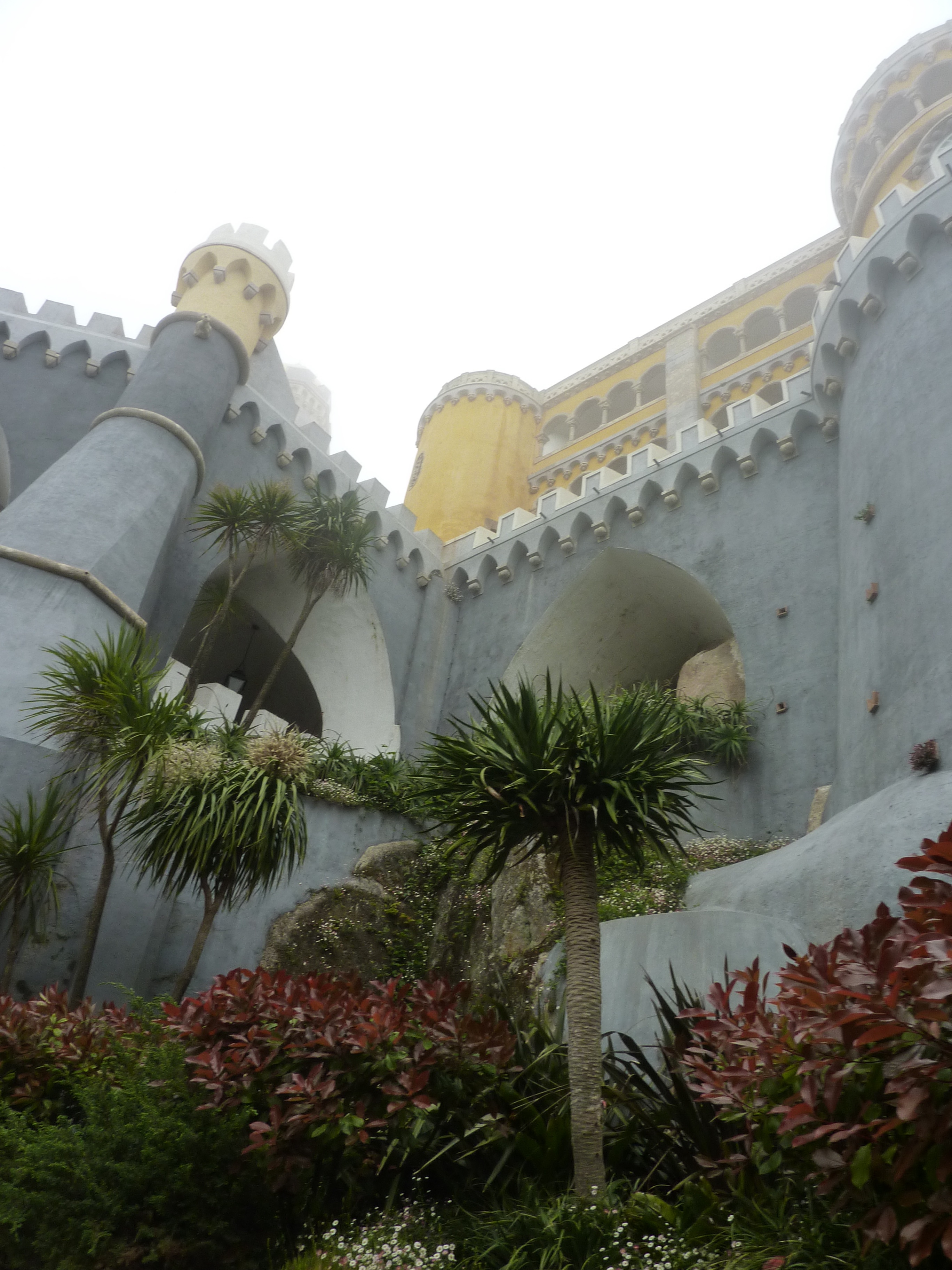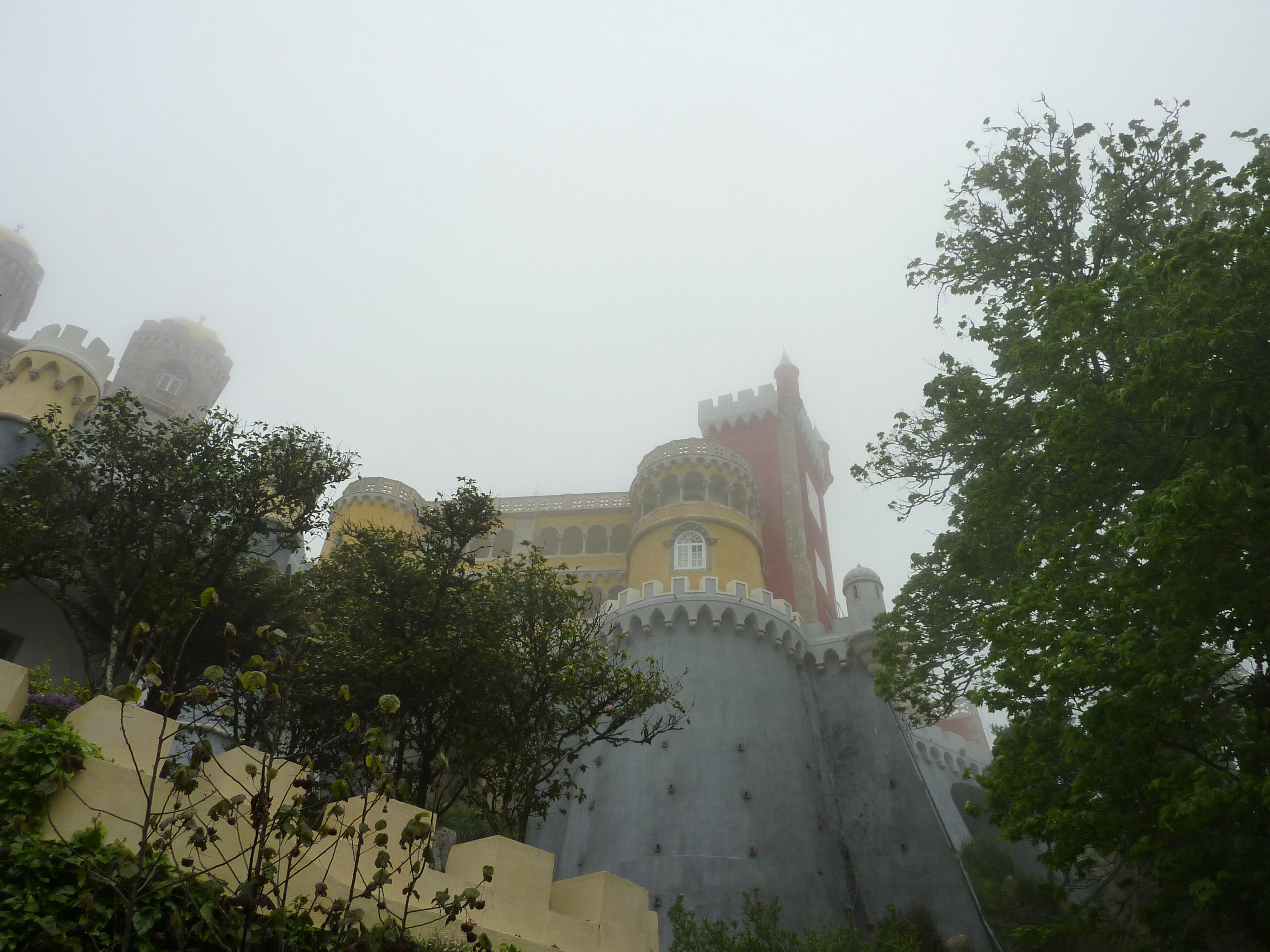 Anyway, bus trip was not all the way to the palace. We still had a decent steep walk for the last part and enjoyed the crisp mountain air …. Or what I call cold wind and mist. Once at the top you could not see a thing. But the mist and wind sounds through the trees gave the palace a strange kind of charm sitting above all the townsfolk below in Sintra.