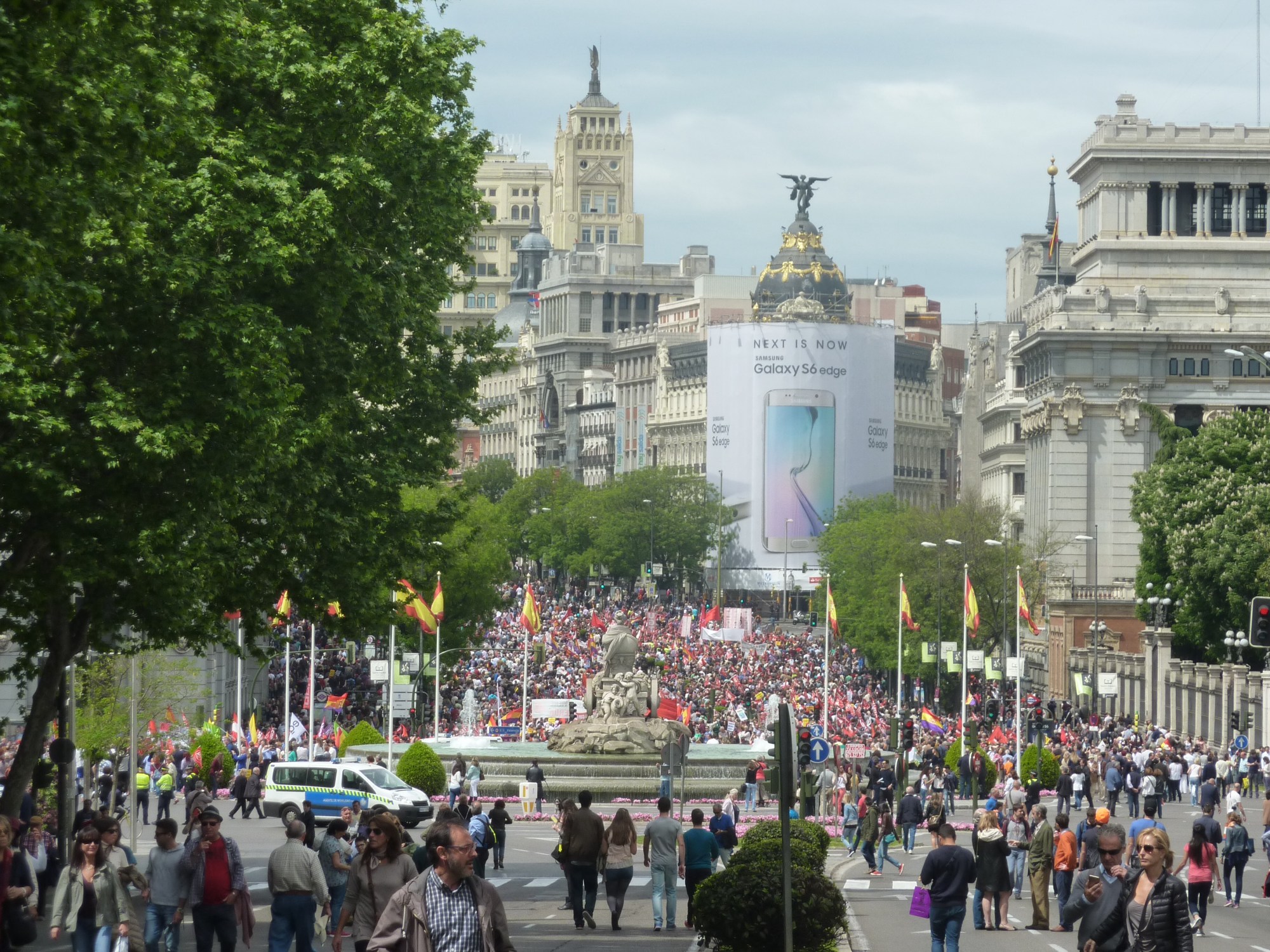 Friday was fun because we walked straight out of our hotel street and into the Labor Day march. And Kylie was keen to join in and be part of the chanting throng. Pity that our Spanish was not developed enough to have a clue of what was going on. But we were there and part of the march.