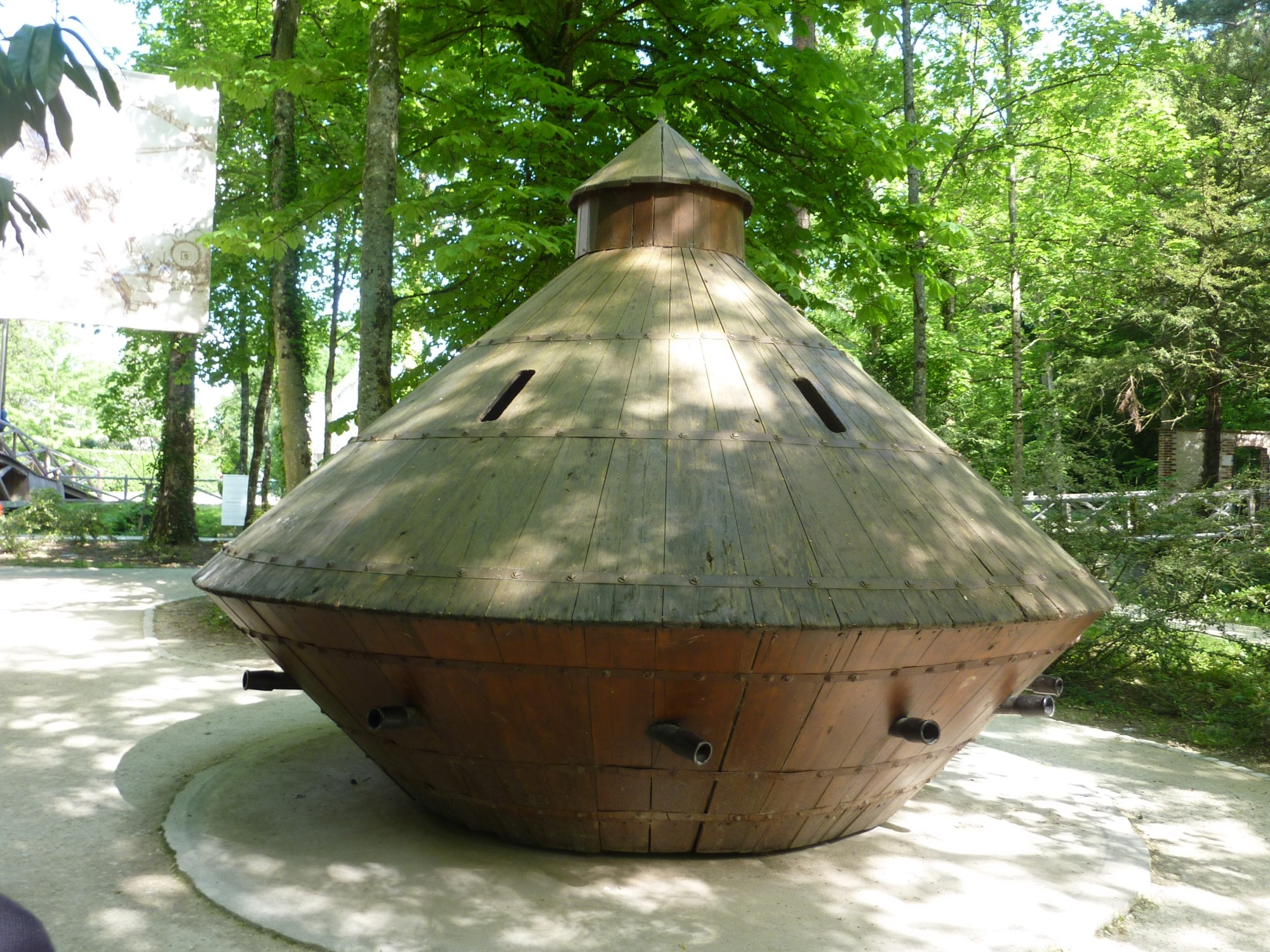 This picture is a wooden tank that was built on the original design of Leonardo da Vinci. Yes Leonardo was a man of the Chateaus in the Loire Valley. When Leonardo was a littler older (he must have been well past 50 because they called him old) the king of France invited him to come and live in a Chateau where he could continue his arts, inventions and just about anything else that a genius mind wanted to create.